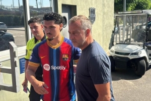 體育資訊7月14日訊 據(jù)西媒《世界體育報》報道,在周日完成例行的傳統(tǒng)體檢后,巴薩一線隊于本周一下午恢復(fù)訓(xùn)練。首次訓(xùn)練課定于當(dāng)?shù)貢r間18點開始,但主帥弗里克在上午10點剛過便已抵達(dá)巴薩的訓(xùn)練基地。