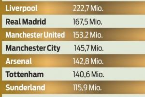 體育資訊7月23日訊?知名拜仁自媒體號(hào)Bayern & Germany轉(zhuǎn)載了一則今夏足壇在支出上排在前列的俱樂(lè)部盤(pán)點(diǎn),拜仁被列在了最下面作為對(duì)比。