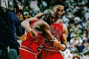 他自己會(huì)在之后的比賽里再拿6分包括一個(gè)絕命三分球,拿下1997年總決賽天王山之戰(zhàn)的勝利,然后倒在皮彭懷里。