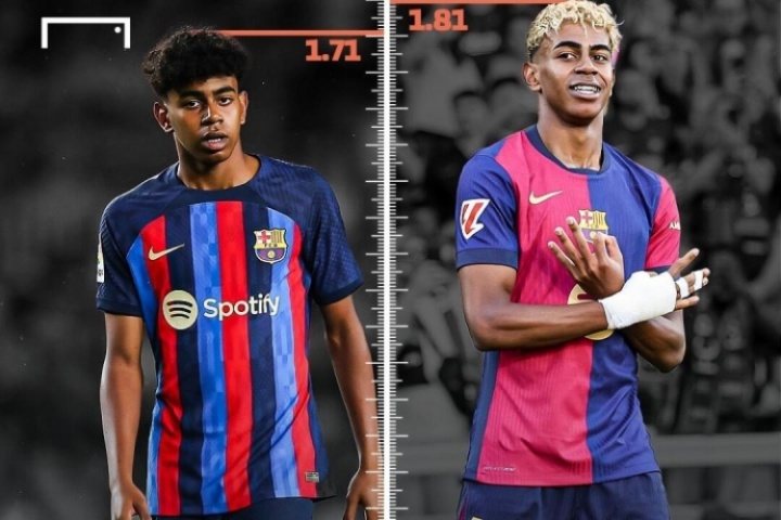 體育資訊07月24日訊 西班牙進(jìn)球網(wǎng)報(bào)道了亞馬爾的身材變化,他在兩年內(nèi)長高了10cm。