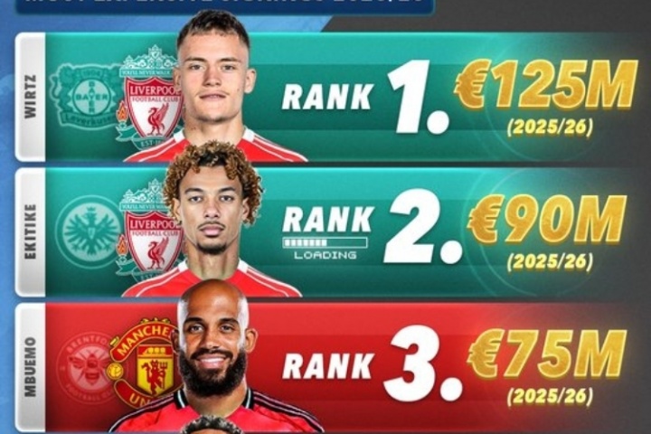 體育資訊07月24日訊 Score90按照轉(zhuǎn)會(huì)費(fèi)用,盤點(diǎn)了正在進(jìn)行的夏窗至今為止的轉(zhuǎn)會(huì)榜單,維爾茨以1.25億歐元轉(zhuǎn)會(huì)費(fèi)居首,前五全部由英超包攬,其中利物浦、曼聯(lián)各占2席,阿森納也在榜單中占據(jù)1席。