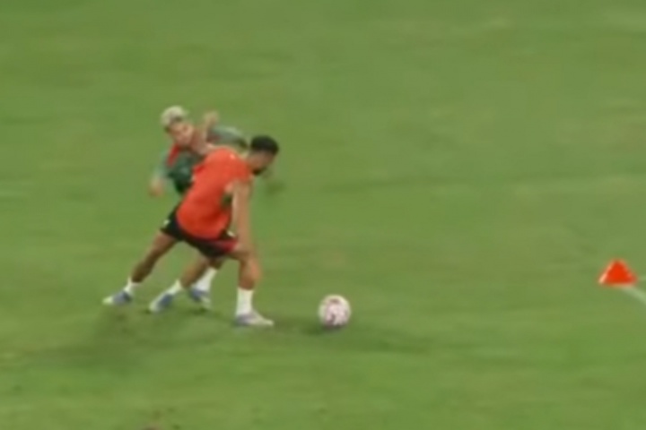 體育資訊07月25日訊 利物浦昨日在中國香港的啟德體育場進(jìn)行了公開訓(xùn)練,訓(xùn)練期間,薩拉赫與迪亞斯在一次搶球時互相進(jìn)行了激烈的身體對抗,引得現(xiàn)場觀眾呼聲連連。