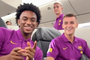 體育資訊7月25日訊 巴薩官方更新社媒動(dòng)態(tài),曬出球員們?cè)陲w機(jī)內(nèi)的視頻。