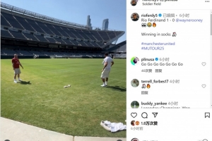 費(fèi)迪南德與魯尼在美國一起參加活動(dòng),兩人在球場(chǎng)內(nèi)顛球互傳,最終魯尼失誤。