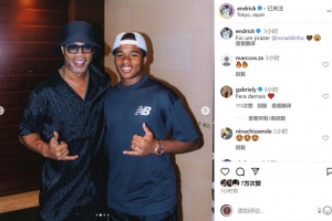 體育資訊7月26日訊 恩德里克更新社媒動態(tài),曬出與巴西傳奇球星羅納爾迪尼奧的合照。