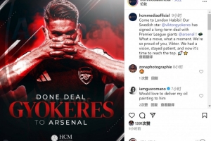 經(jīng)紀(jì)公司社媒曬出約克雷斯加盟阿森納的海報,配文:“來到倫敦!我們的瑞典球星約克雷斯已經(jīng)與英超豪門阿森納簽下了長期合同!”