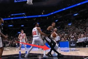 GIF-文班搶籃板落地受傷了 像是過度伸展啊……