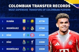 ■哥倫比亞球員最高轉(zhuǎn)會紀錄TOP10:
