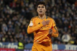 安切洛蒂一直關(guān)注著年僅21歲的貢薩洛,并在2023/24賽季國王杯四分之一決賽中給予了這位小將一展身手的機會。當(dāng)場比賽中,皇馬客場挑戰(zhàn)萊加內(nèi)斯。貢薩洛在比分2-2時替補登場,并在補時階段打入絕殺進球,幫助球隊晉級四強。憑借整賽季在皇馬B隊的出色發(fā)揮,他最終以25粒進球刷新了西班牙第三級別聯(lián)賽的單賽季進球紀錄。