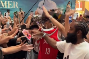 Tomer Azarly寫道:“詹姆斯-哈登一年一度的中國行讓廣州這家商場擠滿成千上萬的粉絲!從雷霆隊、火箭隊、籃網(wǎng)隊和快船隊的球衣到哈登 Vol. 7、8 和 9系列的球鞋,那里應(yīng)有盡有?!?/p>
