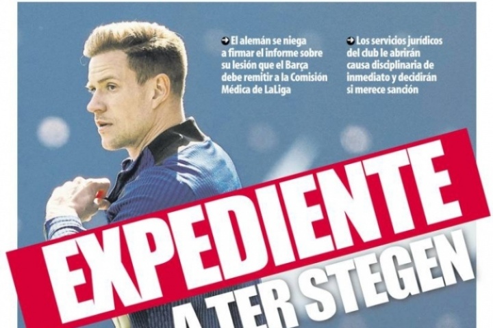 體育資訊08月05日訊 據(jù)《世界體育報》今日頭版消息,由于特爾施特根拒絕授權(quán)俱樂部將醫(yī)療報告提交至西甲,巴薩準備對其啟動紀律處分決定。