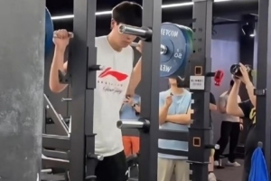 由圖可見小楊練習了深蹲等內(nèi)容,之后他與球迷和教練親切合影。