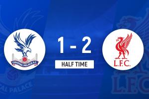 半場(chǎng)結(jié)束,水晶宮1-2利物浦。