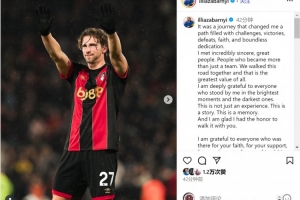 體育資訊8月12日訊 伯恩茅斯22歲中衛(wèi)扎巴爾尼轉會巴黎,他在社交媒體上發(fā)文,與伯恩茅斯告別。