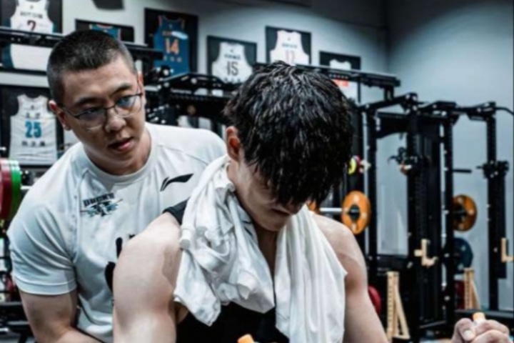 曾凡博繼續(xù)進(jìn)行背部康復(fù)訓(xùn)練,為月底前往布魯克林做準(zhǔn)備。圖中他在北京與TT運(yùn)動(dòng)表現(xiàn)體能館的長(zhǎng)期訓(xùn)練師段然在一塊。他預(yù)計(jì)會(huì)為10月10日和12日在中國(guó)澳門舉行的NBA中國(guó)賽做好準(zhǔn)備。