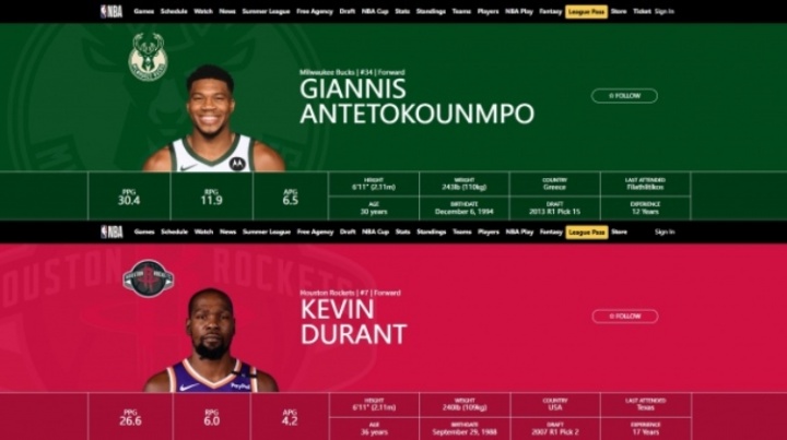 兩人均是6‘11(210.82cm)杜蘭特240LB(108.862kg)字母哥243LB(110.223kg)