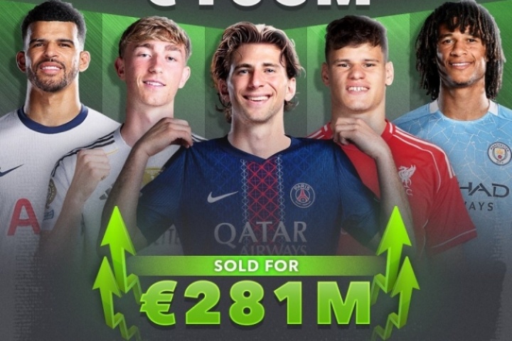 3-懷森,2025年6250萬(wàn)歐賣給皇馬;