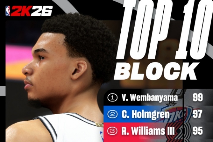 體育資訊08月14日訊 NBA2K官方曬出了NBA2K26蓋帽能力值前十的球員。