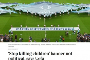 體育資訊8月14日訊 歐足聯(lián)堅稱,在熱刺對陣巴黎圣日耳曼的超級杯賽前展示的“停止殺害兒童——停止殺害平民”橫幅并非政治宣言,而是人道主義呼吁。