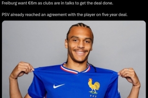 報道稱弗賴堡希望能得到600萬歐,還在與埃因霍溫談判以求完成交易。埃因霍溫已經(jīng)與球員就一份五年合約達成一致。