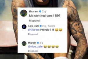本周國米球員扎萊夫斯基在社交媒體上發(fā)布了一張自己的照片,并表示對新賽季已經(jīng)“迫不及待”。而小圖拉姆隨即跟帖詢問稱:“你會(huì)繼續(xù)穿59號球衣嗎?”扎萊夫斯基回答說:“我會(huì)選擇9號?!毙D拉姆則連發(fā)四個(gè)哭泣的圖標(biāo)。因?yàn)閲?號目前屬于小圖拉姆。