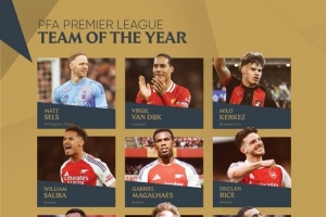 體育資訊8月20日訊 PFA(英格蘭職業(yè)球員工會)官方公布英超年度最佳陣容,最佳陣容由球員投票選出,利物浦4人,阿森納3人,森林2人,伊薩克、科爾克茲在列。