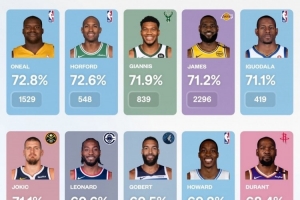 約基奇,71.1%,491次;