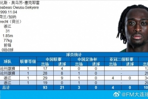 8月20日浙江隊主場2-0擊敗天津津門虎的比賽中,奧烏蘇完成了代表中國俱樂部各項職業(yè)賽事出場100場。