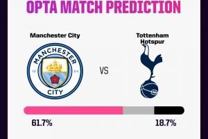 體育資訊08月23日訊 今晚19:30,英超第2輪焦點(diǎn)戰(zhàn)曼城vs熱刺。曼城首輪4-0戰(zhàn)勝狼隊(duì),而熱刺3-0戰(zhàn)勝伯恩利,此役瓜迪奧拉確認(rèn)羅德里、福登可以出戰(zhàn),本輪誰能爭(zhēng)得兩連勝?Opta超級(jí)計(jì)算機(jī)預(yù)測(cè),曼城的勝率為61.7%。