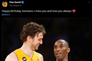 體育資訊8月24日訊 今天是科比的生日,加索爾更推為科比送上了生日祝福。