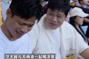 范志毅亮相廣東省超,喝涼茶被苦出表情包,與蘇炳添組成“添飯組合”。