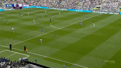 體育資訊08月24日訊 布萊頓vs埃弗頓比賽第17分鐘,三笘薫接后場長傳,高難度挑球甩飛兩人,凌空抽射擊中橫梁彈出。