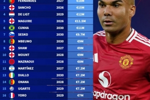 體育資訊8月24日訊 德轉(zhuǎn)盤點(diǎn)了曼聯(lián)球員年薪榜單,其中卡塞米羅2100萬歐居首,桑喬1500萬歐第三,具體如下(合同到期時(shí)間+年薪):