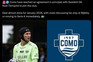 體育資訊8月25日訊 據(jù)知名轉(zhuǎn)會(huì)專家羅馬諾報(bào)道,科莫已經(jīng)與瑞典門(mén)將諾埃爾-托爾奎斯特達(dá)成原則性一致。