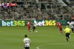 這一畫面發(fā)生于第47分鐘,當(dāng)時利物浦多打一人2-0領(lǐng)先。紐卡反擊,巴恩斯前插,科納特補防,前者倒地,裁判未吹罰,VAR未介入,吉馬良斯抗議判罰因此吃到黃牌。