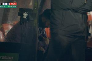 點球大戰(zhàn)進行中時,鏡頭給到阿莫林,阿莫林坐在教練席上,他低著頭沒有看向場上。