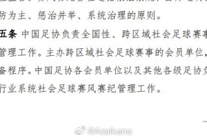 當(dāng)然了,但凡對(duì)中國(guó)足協(xié)職責(zé)有點(diǎn)了解,懂點(diǎn)新體育法的,或者看過(guò)這個(gè)文件的,都不至于想出個(gè)這么搞笑的聯(lián)系。因?yàn)檫@個(gè)文件出臺(tái)背景是蘇超誕生之前的事情,里面甚至白紙黑字規(guī)定了分好了中國(guó)足協(xié)和地方足協(xié)、社會(huì)辦賽方的權(quán)利義務(wù),甚至規(guī)定地方賽事主辦者才是賽風(fēng)賽紀(jì)第一責(zé)任人,廣大球迷深惡痛絕的賽風(fēng)賽紀(jì)問(wèn)題現(xiàn)在捋順了明確的職責(zé)分工,反而對(duì)蘇超這類社會(huì)賽事來(lái)說(shuō)是個(gè)大大的好事。