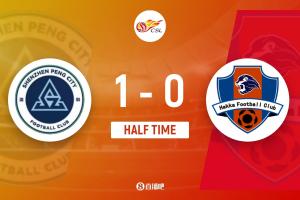 上半場比賽結(jié)束,深圳新鵬城主場暫時1-0領(lǐng)先梅州客家。