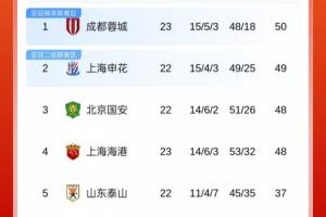 體育資訊08月31日訊 中超第23輪部分比賽結(jié)束,最新積分榜方面:蓉城憑借對海港的主場大勝成功登頂,爭冠對手申花、海港本輪均輸球分別居第2、4名,第3名的國安目前也客場大比分落后排名第5的山東泰山。