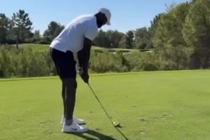 詹姆斯曬與友人冒著102華氏度(38.9攝氏度)高溫練習(xí)打高爾夫的一系列動(dòng)態(tài)及合影。