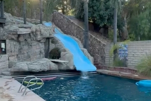 從視頻中可以看到,他從滑滑梯滑下的同時(shí)命中了一記超遠(yuǎn)的投籃(上方視頻),而在第二個(gè)視頻(下方)中他在滑梯中失去平衡,上演了五大囧。
