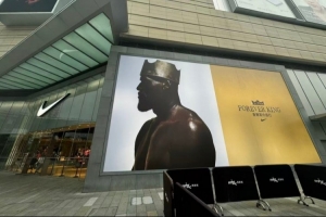 據(jù)成都當?shù)鼐W(wǎng)友爆料,萬象城耐克門店周邊已經(jīng)布置了詹姆斯中國行的巨幅宣傳海報。