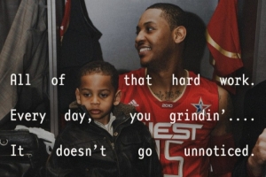 “感謝你為我鋪好了路,把這份傳奇?zhèn)鞒械搅宋业氖稚?,我知道自己?huì)很好,因?yàn)槟銜?huì)一直陪在我身邊,我只想告訴你,看著你正式入選名人堂,對(duì)我而言意味著整個(gè)世界。感恩你付出的一切,請(qǐng)繼續(xù)向前邁進(jìn),繼續(xù)超越自我——愛你!”
