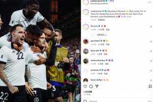 他也在賽后通過(guò)社媒曬出全隊(duì)的慶祝照,并配文:“真是讓人雞皮疙瘩都起來(lái)了??我身披德國(guó)隊(duì)?wèi)?zhàn)袍的首粒進(jìn)球,為球隊(duì)贏下了三分!無(wú)比激動(dòng),無(wú)比感恩?!?/p>