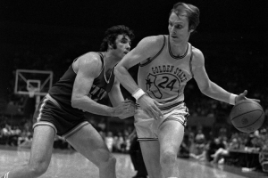 里克-巴里在1965年NBA選秀中于第1輪第2位以榜眼秀的身份被舊金山勇士隊(duì)(現(xiàn)金州勇士隊(duì))選中,1975年隨勇士隊(duì)奪得NBA總冠軍并榮膺NBA總決賽MVP(FMVP),12次入選全明星陣容(8次NBA+4次ABA),NBA75大球星之一。