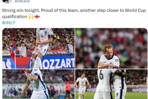 凱恩社媒曬出比賽照片,配文:“今晚大獲全勝,為球隊(duì)感到驕傲,距離晉級世界杯又近了一步?!?/p>