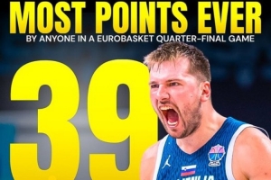 根據(jù)數(shù)據(jù)統(tǒng)計,東契奇此役39分,這是歐錦賽1/4決賽歷史單個球員的得分紀(jì)錄。