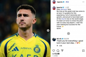 我在這家偉大俱樂部的時光已經畫上句號,對于這段充滿回憶與成長的經歷,我心懷感激,我為成為沙特聯賽在世界舞臺崛起的一部分而感到自豪,能與眾多頂級球員并肩作戰(zhàn)是我的榮幸。