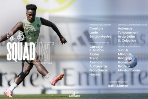 體育資訊9月13日訊 北京時間今天22點15,西甲第4輪皇馬將客戰(zhàn)皇家社會,皇馬公布了此役大名單。