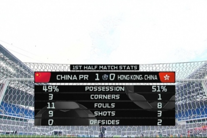 體育資訊07月15日訊 東亞杯中國(guó)隊(duì)vs中國(guó)香港隊(duì),中國(guó)隊(duì)上半場(chǎng)1-0領(lǐng)先中國(guó)香港隊(duì)。
